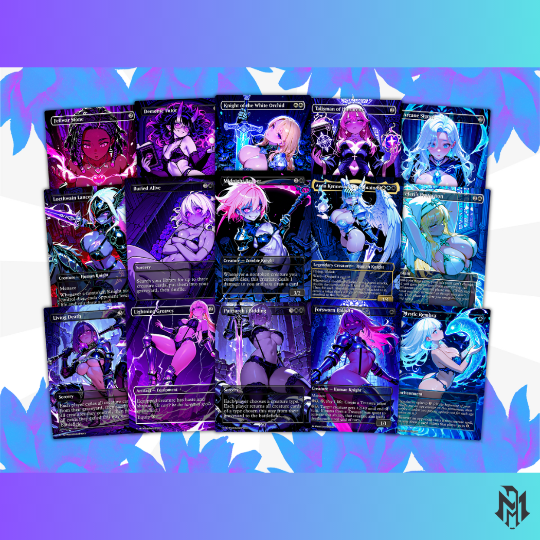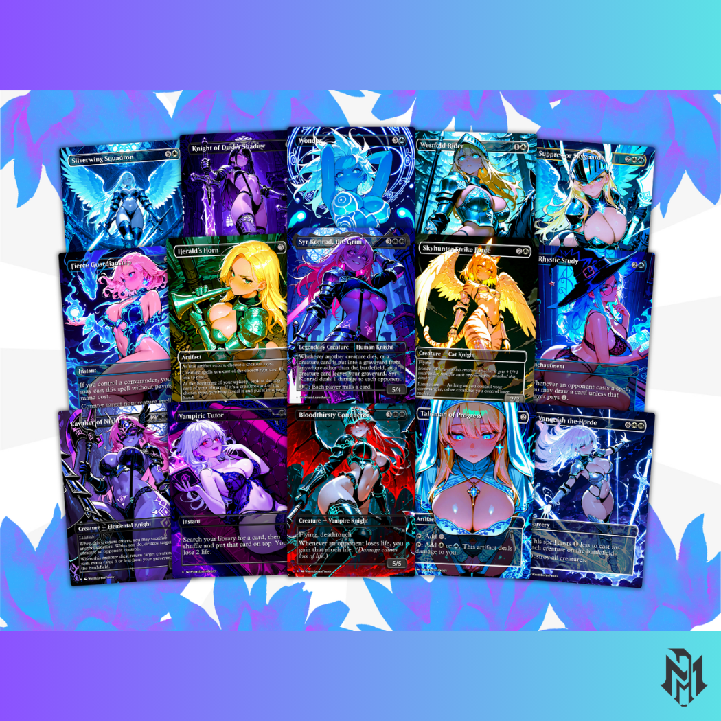 With custom full-art anime waifu designs, themed borderless tokens, and ready-to-play optimization, this deck is a striking addition to any EDH lineup.