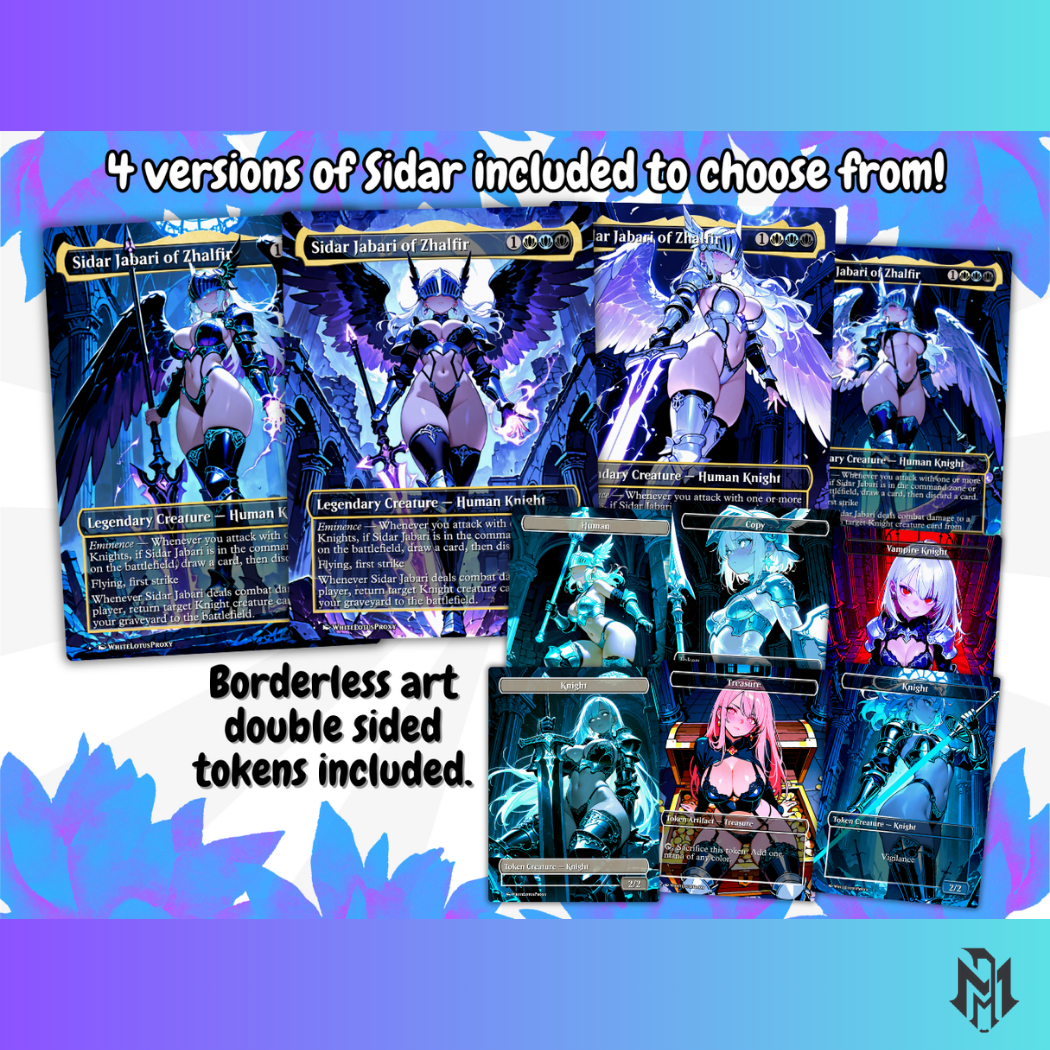 This 100-card Knight Commander Deck – Anime Waifu Edition is built for speed, synergy, and sheer elven numbers. Knight leads with powerful token generation and a life-draining tap ability, making her one of the most effective and stylish Elf Tribal commanders available.