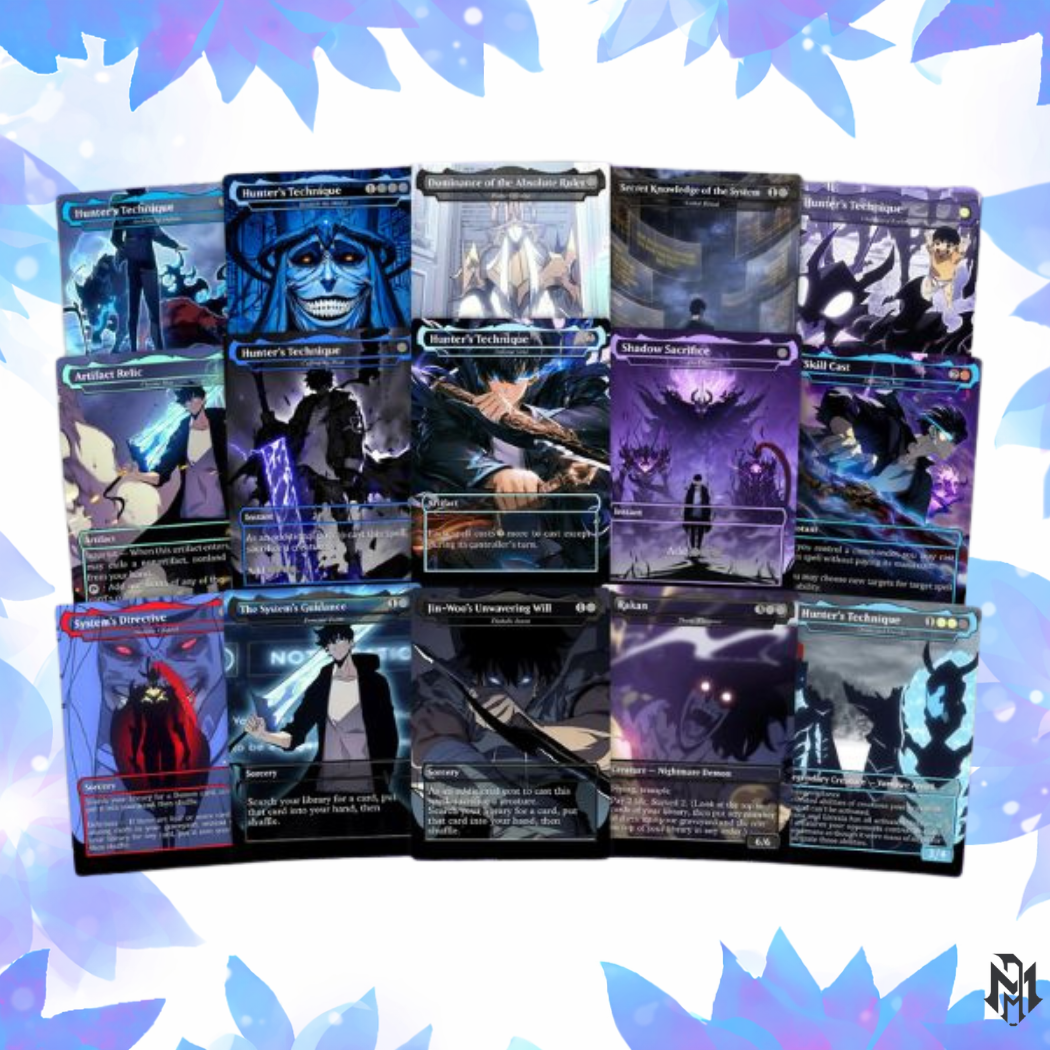 The Solo Leveling Commander Deck – Jinwoo Sung Edition transforms the iconic world of hunters, monarchs, and shadow armies into a fully playable, anime-inspired EDH experience. Featuring dynamic full-art designs and thematic mechanics, this deck is built for players who want style, power, and unforgettable battlefield presence.